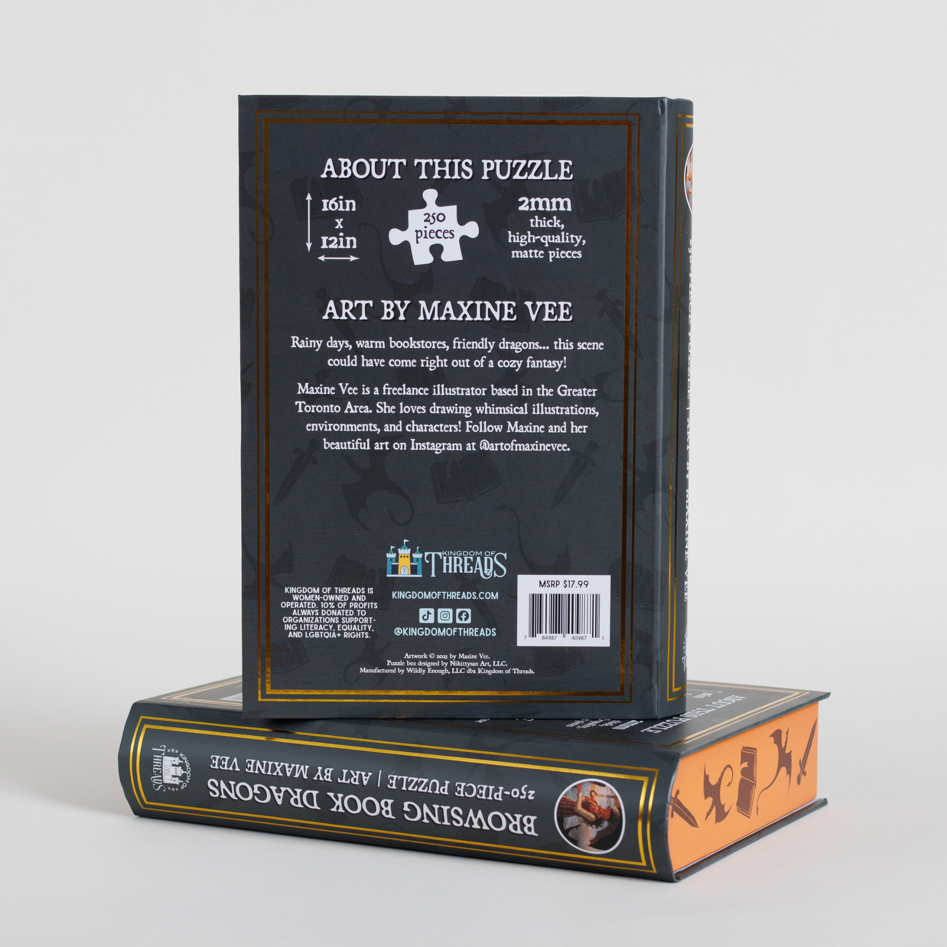 Rainy days, warm bookstores, friendly dragons… this scene could have come right out of a cozy fantasy! This gorgeous puzzle is perfect for all your customers who dream of a cozy life with adorable little dragons by their side.
