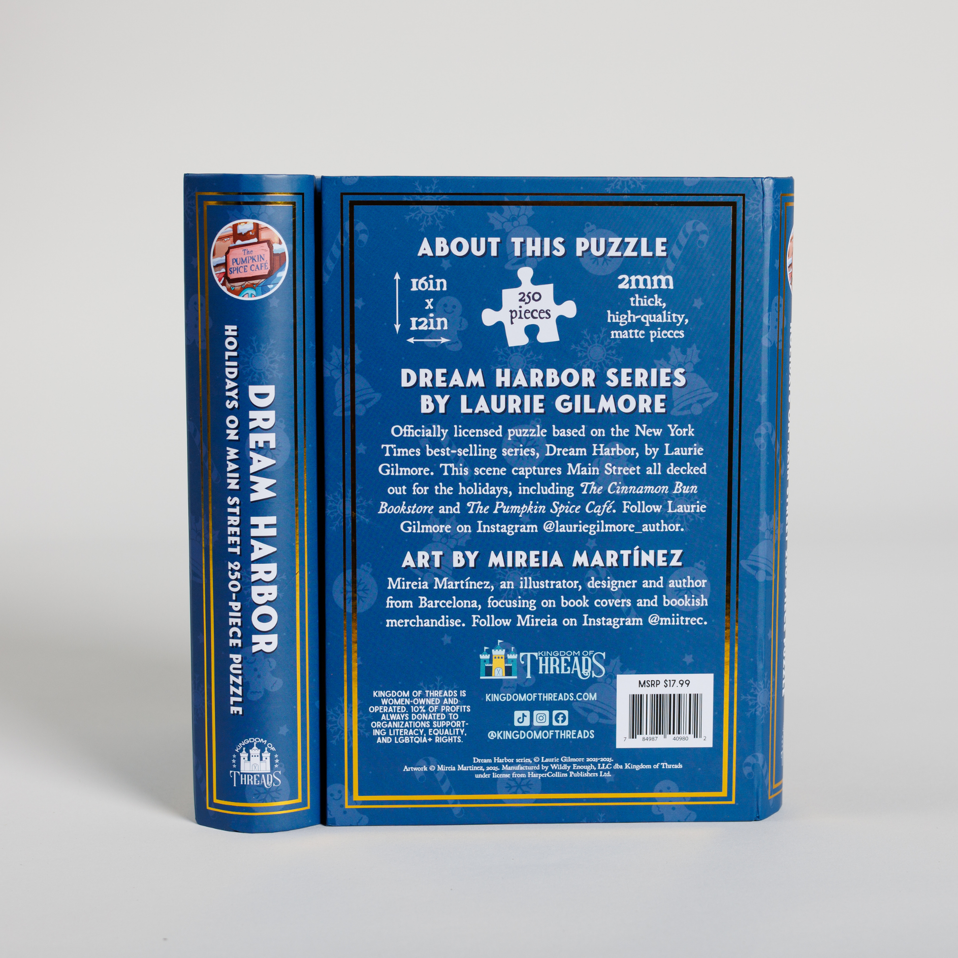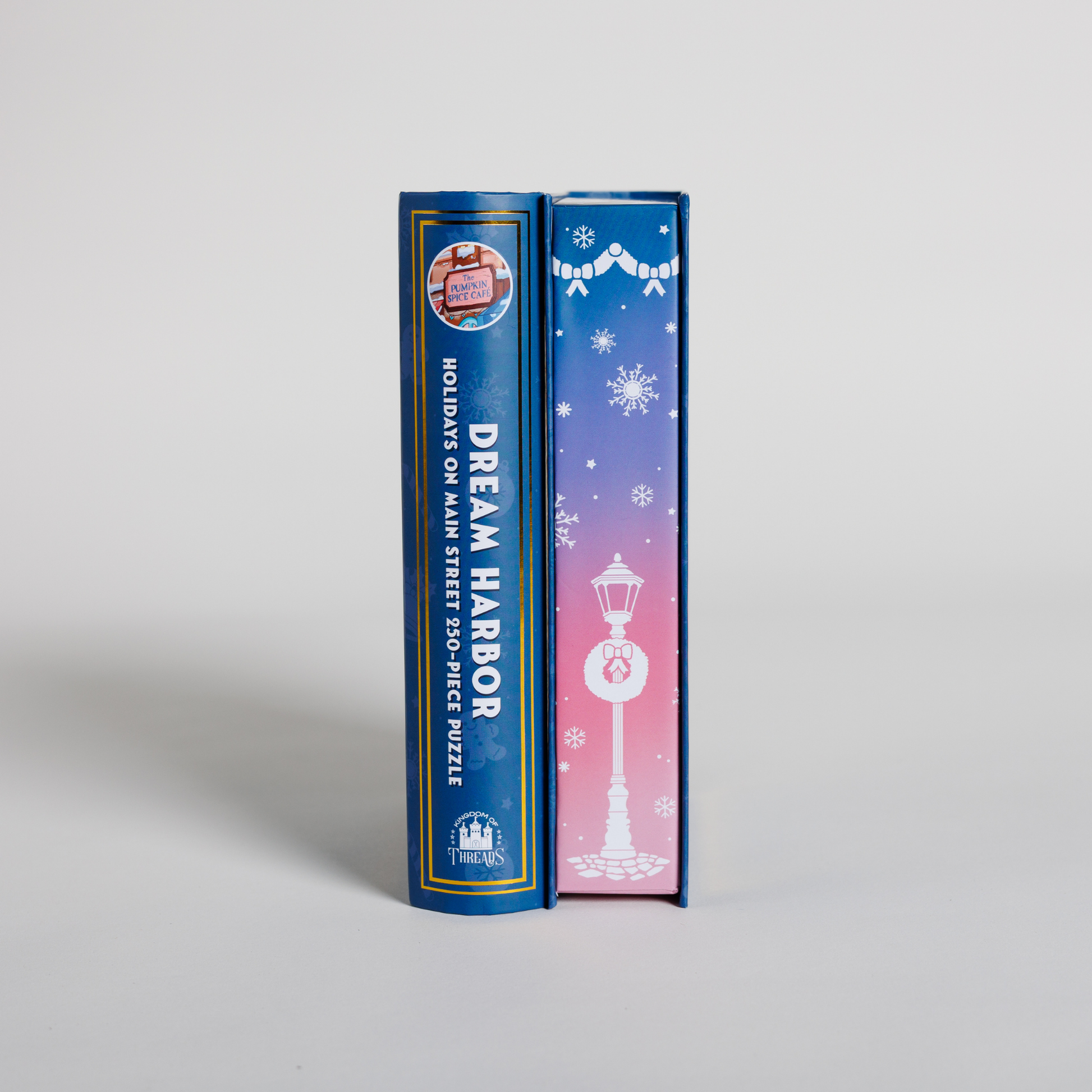 This puzzle is for everyone who dreams of cozy winter nights in Dream Harbor. Every shop on Main Street is decorated for the holidays- from the Cinnamon Bun Bookstore to the Pumpkin Spice Café!