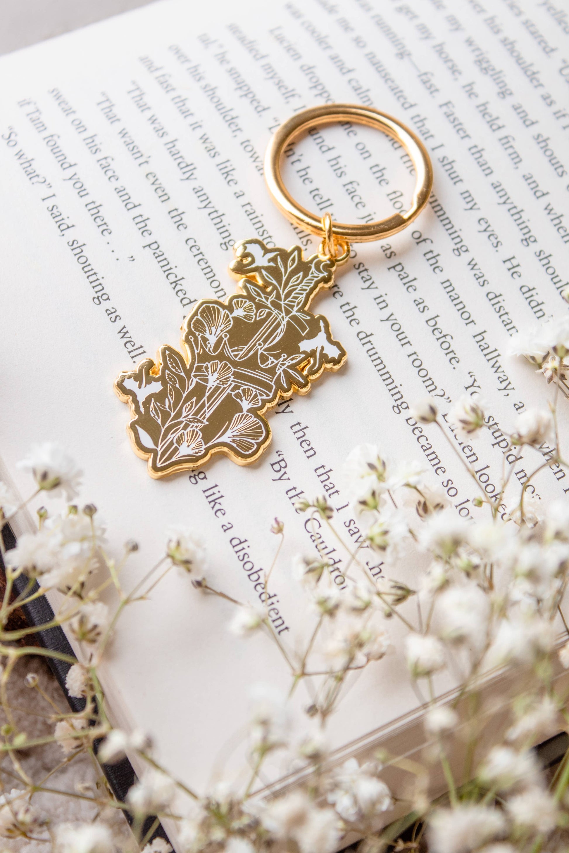 Ivory Sword Fantasy Reader Enamel Keychain