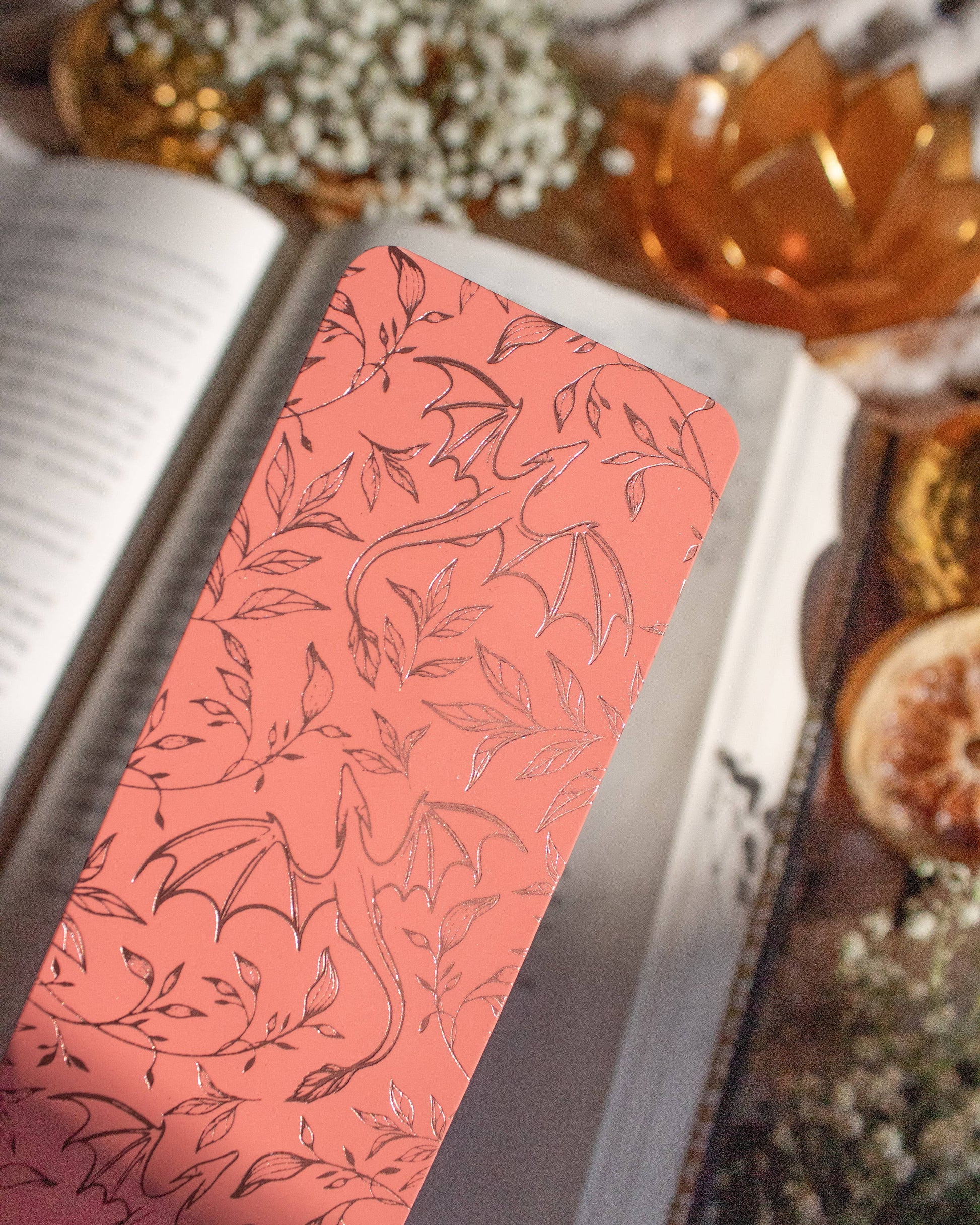 Rose Gold Foil & Coral Floral Dragons Bookmark | Soft Touch
